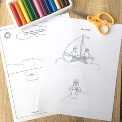 Descarga esta linda escena de Jesús llamando a sus discípulos Pedro y Andrés mientras ellos trabajaban en la pesca.